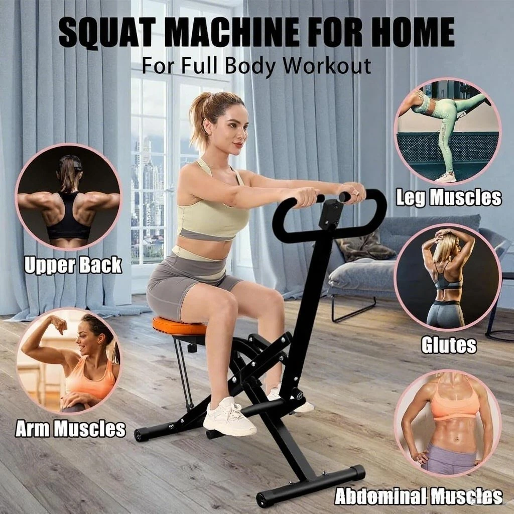 Enhance your workout routine with Row and Ride Squat Machine. This multifunctional equipment features natural squat training, supports up to 265 pounds, and features abdominal muscle training with elastic bands. The built-in counter helps track your progress, and its foldable design saves space. Ideal for a complete home gym setup.